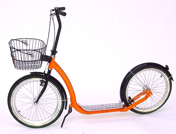 Straßenflitzer in Rahmenfarbe orange mit Option Schutzblech und Frontkorb